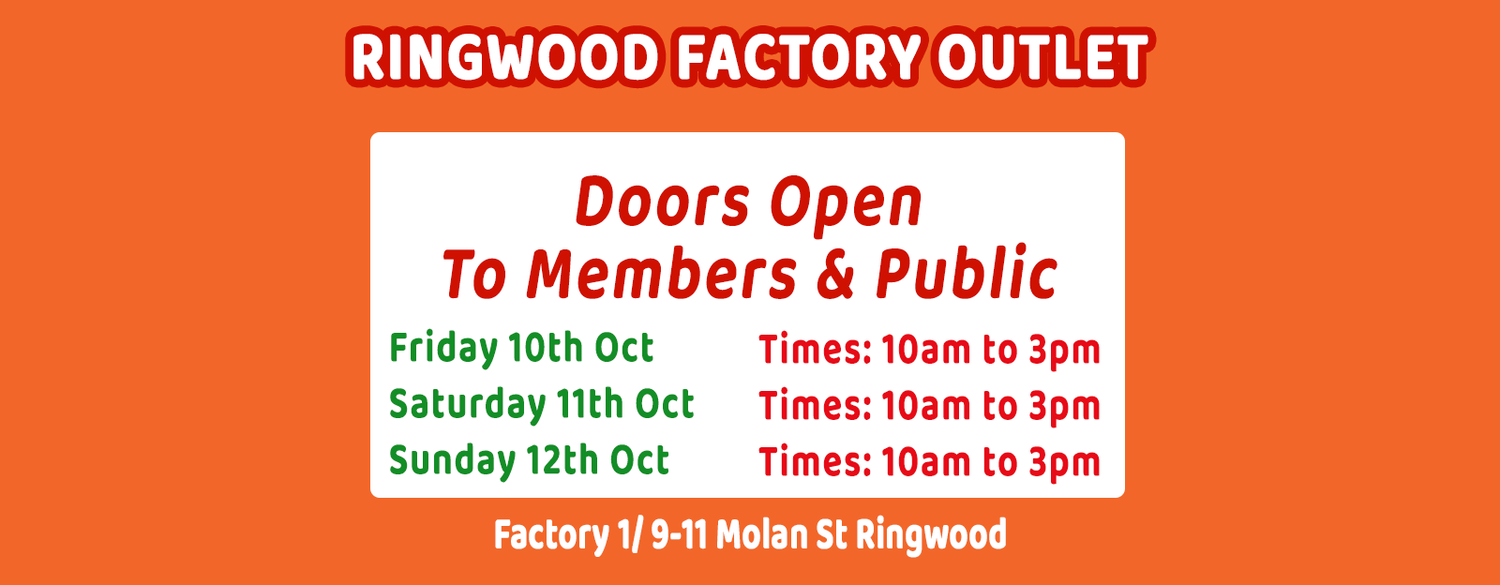 Ringwood Factory Outlet is one of Melbourne’s Best Direct to Public Sales Outlet with lots of treasures and bargains to be found all the time. We offer items from Kitchen acc’s, Home Ware, Manchester, to garden accessories. We only open certain times throughout the year. Join our VIP Club for special invitations and updates.